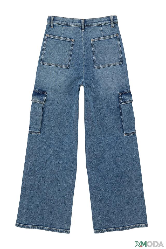 Джинсы имеют прямой крой и широкие штанины, обеспечивающие свободу движений. Отличительной особенностью являются накладные карманы-карго на бёдрах, добавляющие образу практичности и оригинальности. Застежка на молнию и пуговицу, а также классические джинсовые швы.