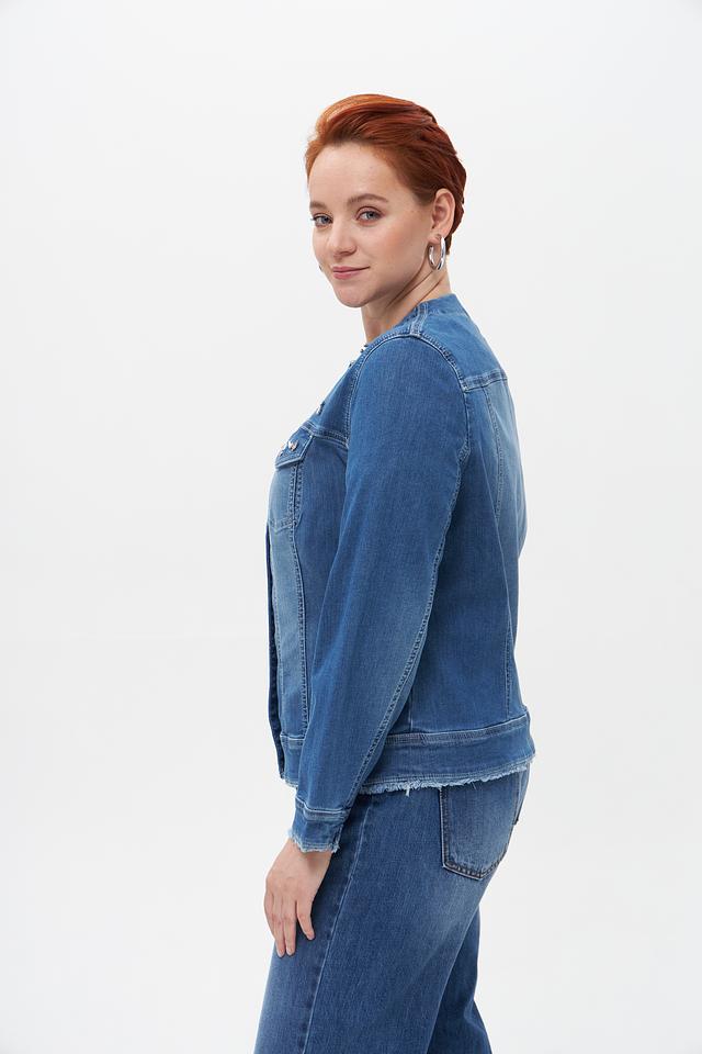 Синий джинсовый жакет Rabe collection с декоративной вышивкой. Изготовлен из хлопка с добавлением полиэстера и эластана для комфорта и износостойкости. Модель застегивается на пуговицы. Состав: хлопок 92%, полиэстер 6%, эластан 2%