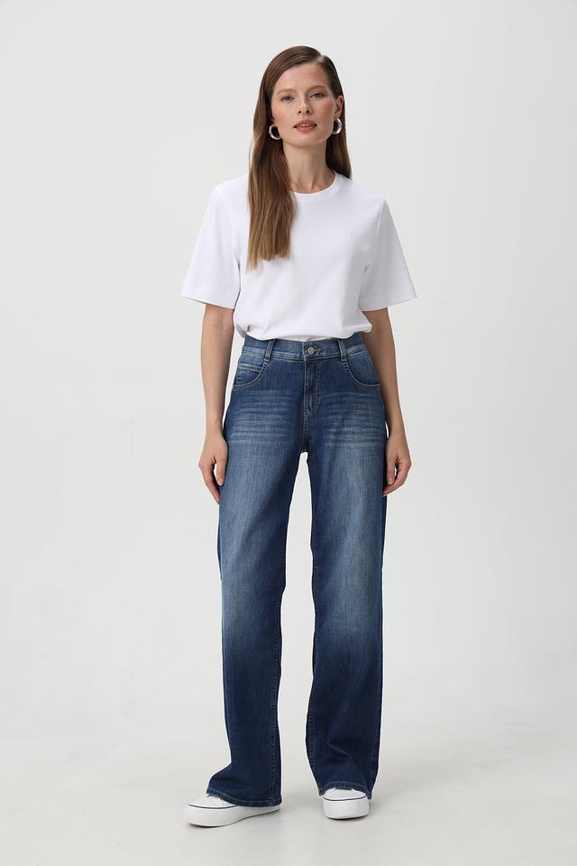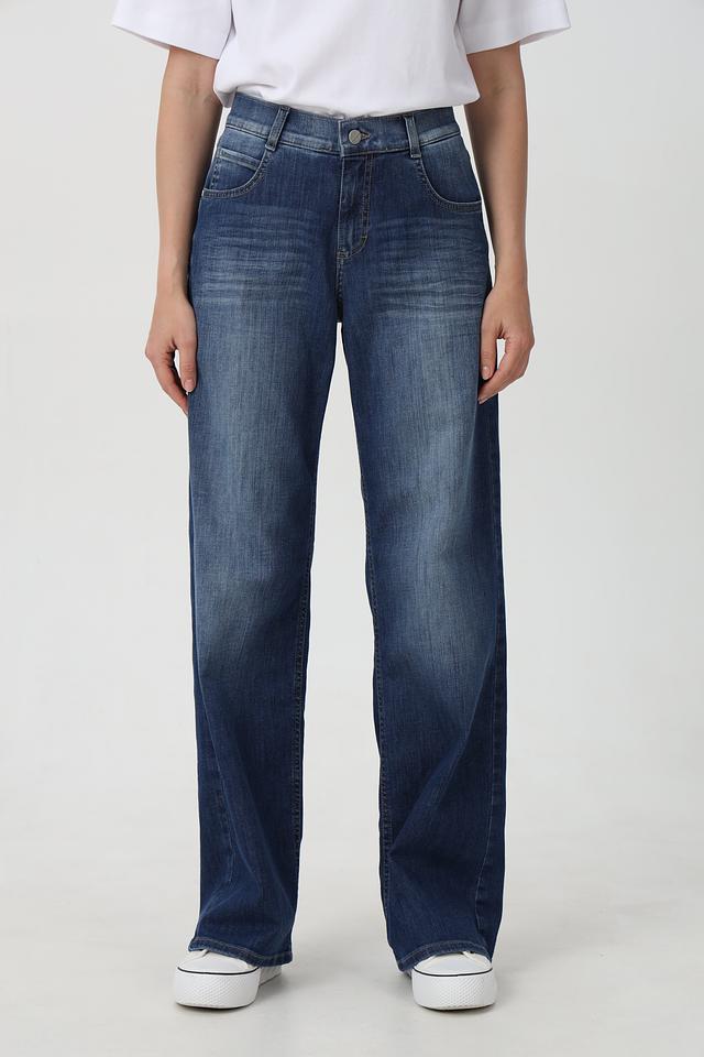 Синие джинсы Angels широкого кроя – стильная и удобная модель на каждый день. Классическая посадка и эффект потертостей придают джинсам современный вид. Подходят для создания разнообразных образов. Состав: хлопок 91%, полиэстер 6%, эластан 3%