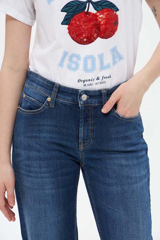 Джинсы имеют завышенную талию, которая подчеркивает фигуру и обеспечивает комфортную посадку. Прямой крой создает элегантный силуэт и подходит для любого типа телосложения. Ткань состоит из 92% хлопка, 6% эластомультиэстера и 2% эластана, что обеспечивает мягкость, эластичность и долговечность изделия.