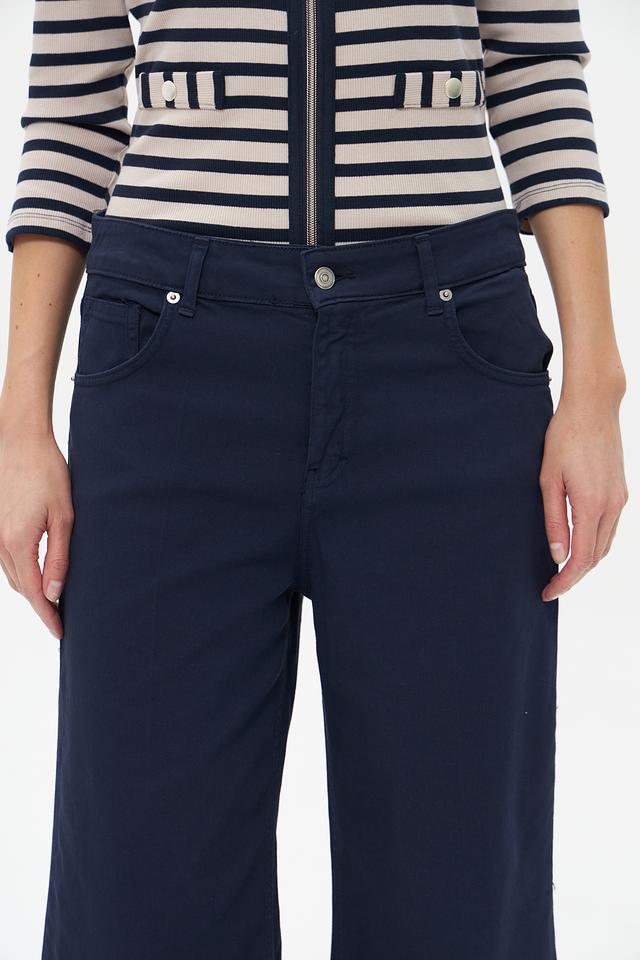 Женские джинсы Croche тёмно-синего цвета, выполнены в стиле клеш с высокой посадкой. Модель отличается удобным кроем и универсальностью, идеально подходит для создания стильных образов. Состав: хлопок 97%, эластан 3%