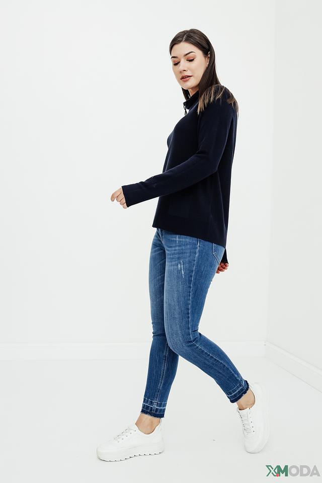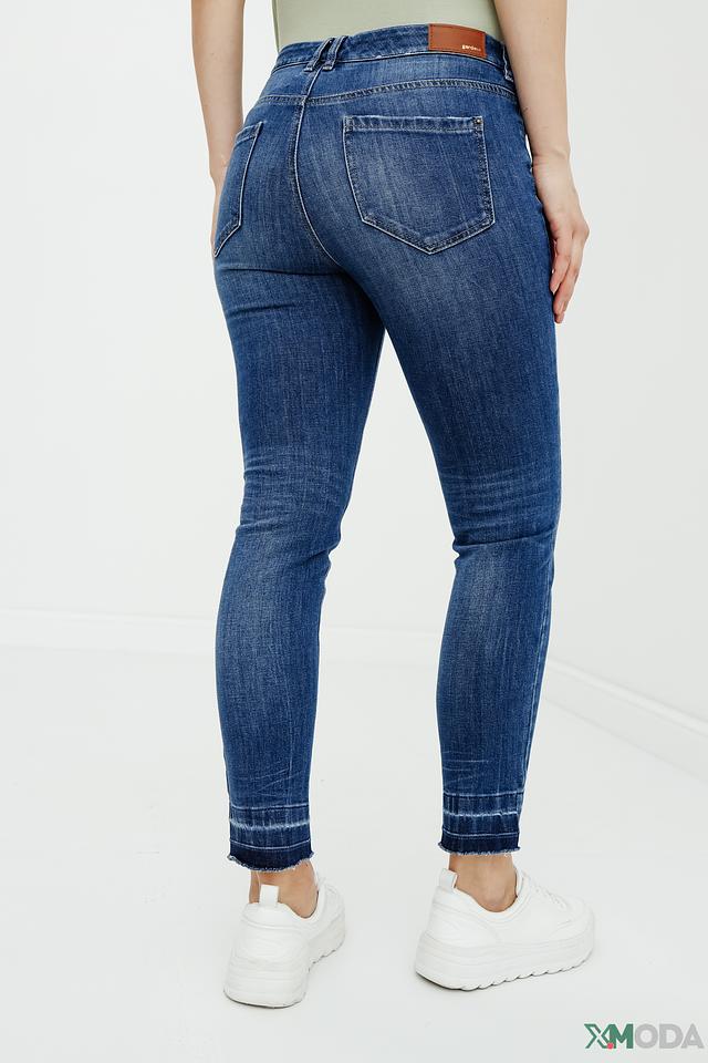 Джинсы имеют прямой крой, который подчеркивает фигуру, не сковывая движений. Эффект потертостей придает им непринужденный и современный вид. Необработанный край штанин добавляет оригинальности и подчеркивает трендовость модели.
