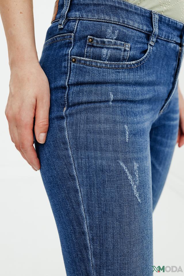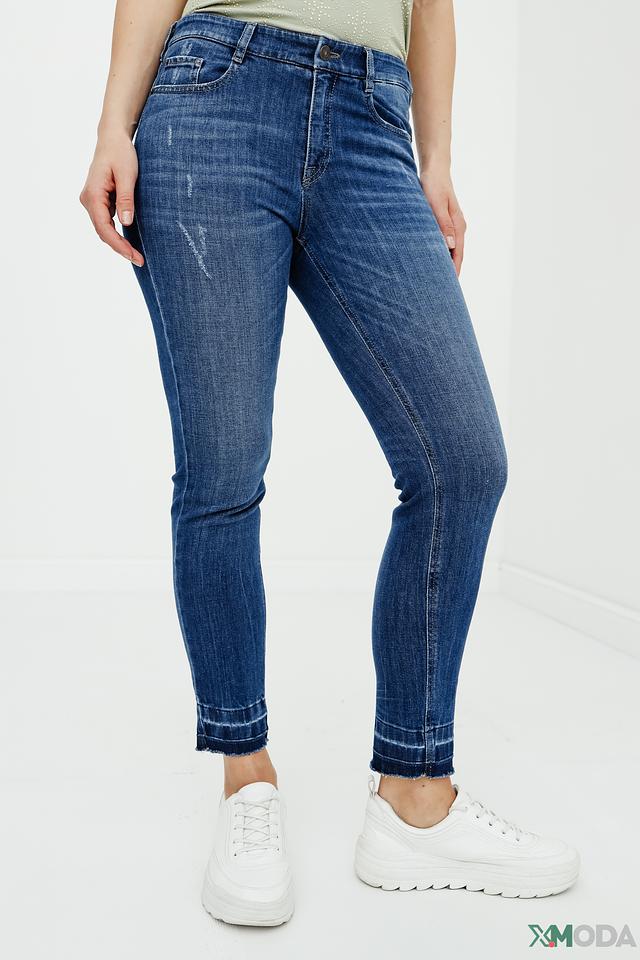 Женские джинсы Gardeur синего цвета с эффектом потертостей и необработанным краем. Модель выполнена из качественного хлопка с добавлением полиэстера и эластана для комфорта и износостойкости. Состав: хлопок 91%, полиэстер 8%, эластан 1%