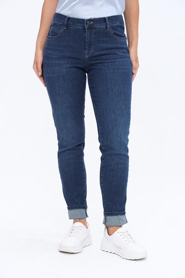 Классический крой Slim Fit подчеркивает фигуру, а умеренная степень потертости придает джинсам современный вид. Застежка на металлическую пуговицу и пятикарманный дизайн делают эти джинсы универсальными и практичными. Подвернутые штанины добавляют образу непринужденности.