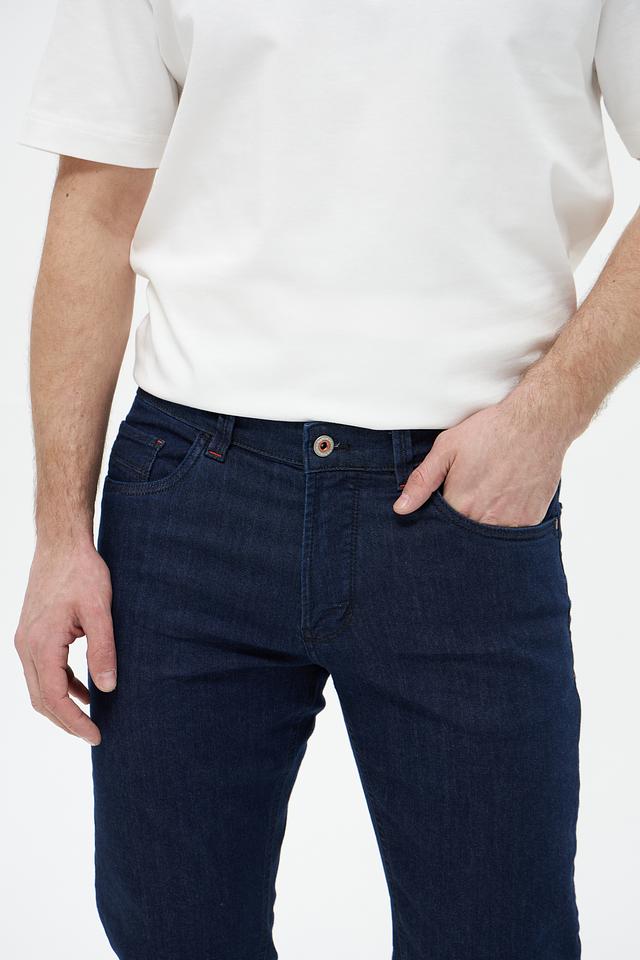 Мужские джинсы Hattric классического синего цвета и прямого кроя. Изготовлены из качественного хлопка с добавлением полиэстера и эластана для комфорта и долговечности. Состав: хлопок 91%, полиэстер 7%, эластан 2%