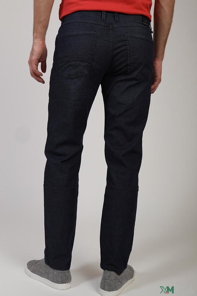 Джинсы имеют прямой, слегка зауженный крой (slim fit), который подчеркивает фигуру и обеспечивает комфортную посадку. Ткань состоит из 97% хлопка и 3% эластана, что гарантирует мягкость, удобство и небольшую эластичность.