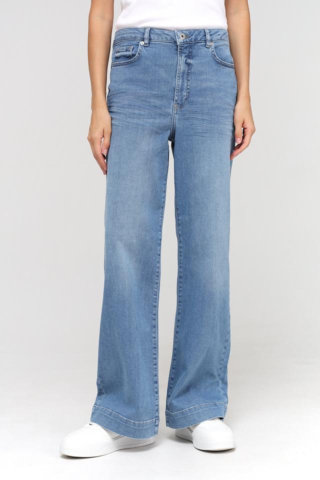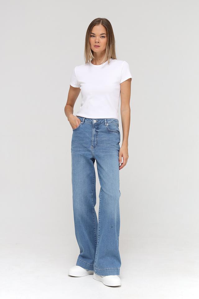 Джинсы имеют высокую посадку, которая визуально удлиняет ноги и подчеркивает талию. Свободный крой в области бедер и штанин обеспечивает комфорт при носке и создает расслабленный образ. Пять карманов – два спереди и три сзади – добавляют функциональности.