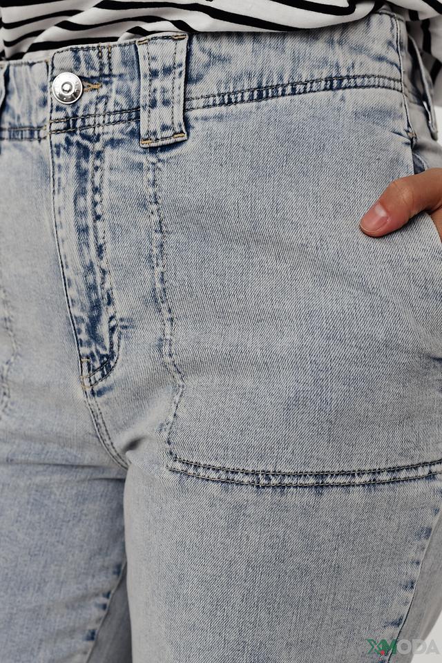 Джинсы изготовлены из высококачественного хлопка с добавлением эластана (2%), что делает их приятными на ощупь и обеспечивает хорошую посадку по фигуре. Особенности дизайна включают накладные карманы спереди и сзади, а также слегка укороченный крой, который делает их похожими на кюлоты.