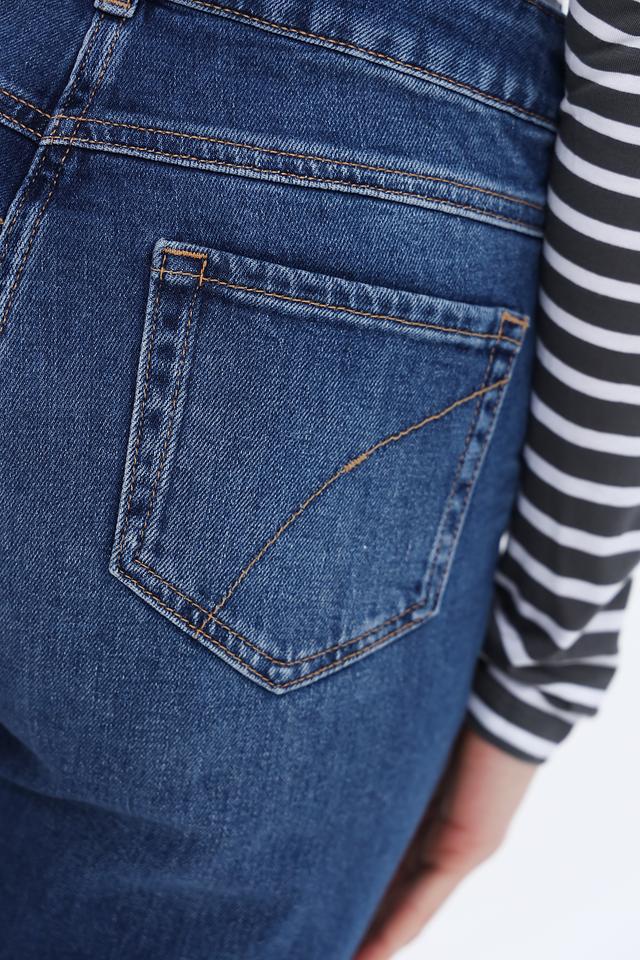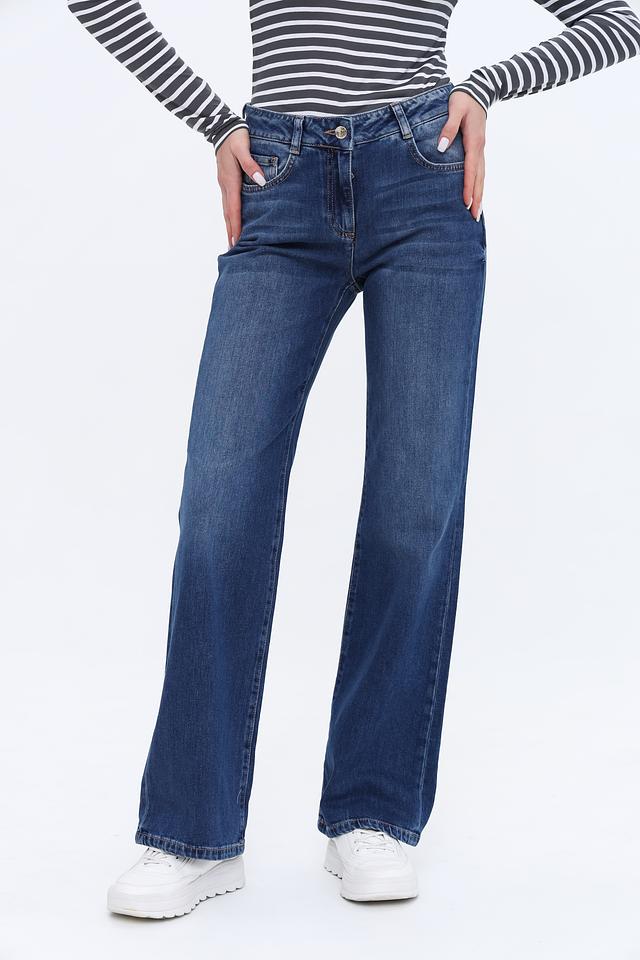 Джинсы имеют широкие штанины, обеспечивающие комфорт и свободу движений. Высокая посадка подчеркивает талию и создает элегантный силуэт. Ткань состоит из 99% хлопка и 1% эластана, что гарантирует удобство в носке и сохранение формы.