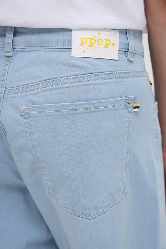 Застежка на молнию и пуговицу, пять карманов — два спереди, два сзади и один небольшой карман для мелочи. На заднем кармане расположен декоративный лейбл с логотипом бренда. Джинсы Ppep. станут отличным дополнением к вашему гардеробу и подчеркнут ваш индивидуальный стиль.