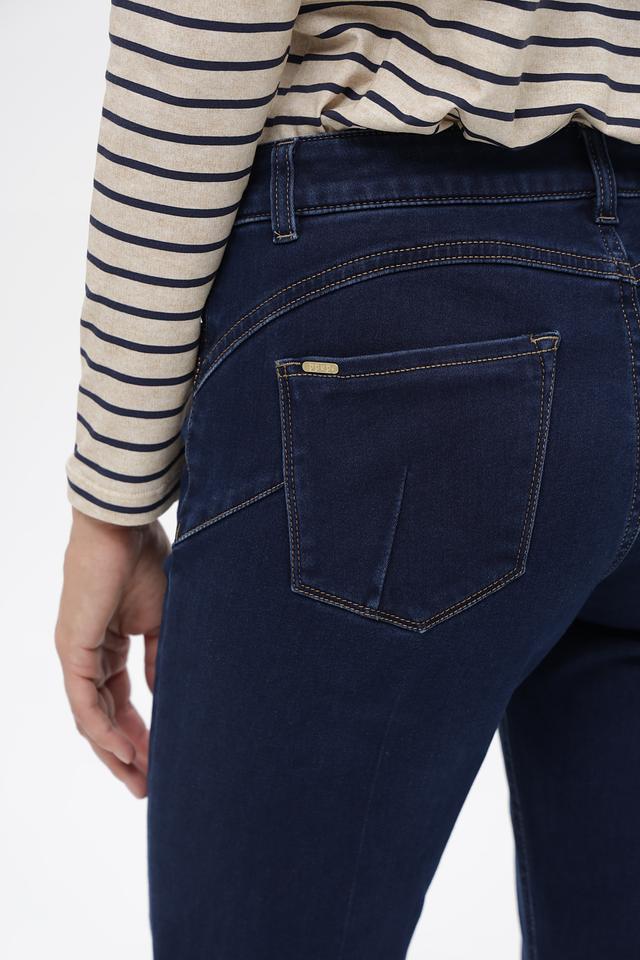 Джинсы изготовлены из сочетания хлопка (64%), вискозы (11%), полиэстера (23%) и эластана (2%). Хлопок обеспечивает комфорт и воздухопроницаемость, вискоза придает мягкость и приятные тактильные ощущения, полиэстер – износостойкость, а эластан – эластичность и свободу движений. Декоративная стежка бежевого цвета добавляет изделию оригинальности.