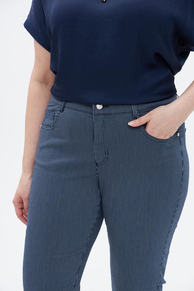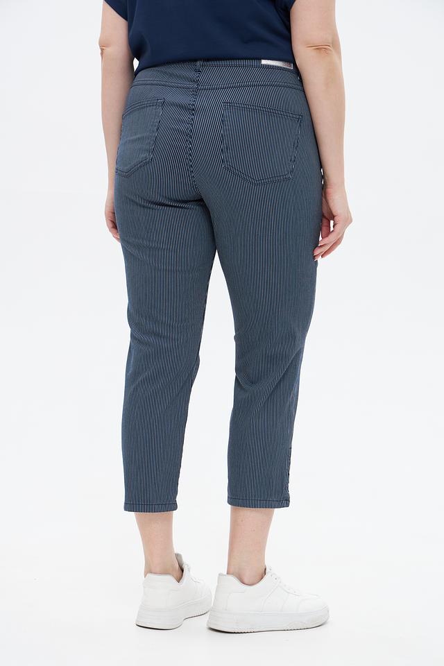 Женские джинсы Rabe collection синего цвета с вертикальной полоской — удобная и стильная модель укороченного кроя. Изготовлены из хлопка с добавлением полиэстера и эластана для комфорта и износостойкости. Состав: хлопок 74%, полиэстер 23%, эластан 3%