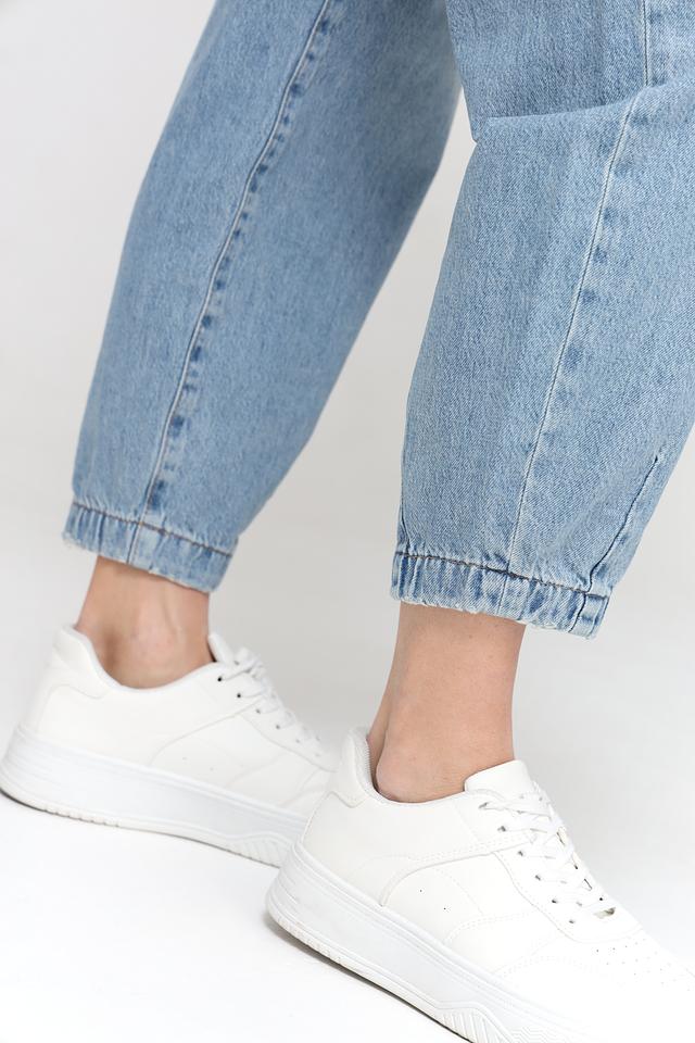 Женские джинсы Mom Fit от Rich and Royal голубого цвета, выполнены из 100% хлопка. Модель с завышенной талией и свободным кроем, оформлена манжетами внизу брюк. Состав: хлопок 100%