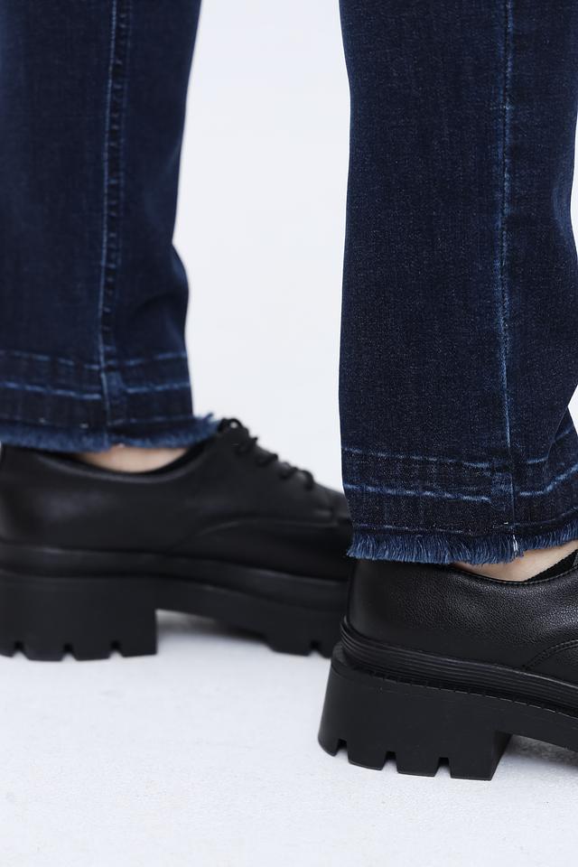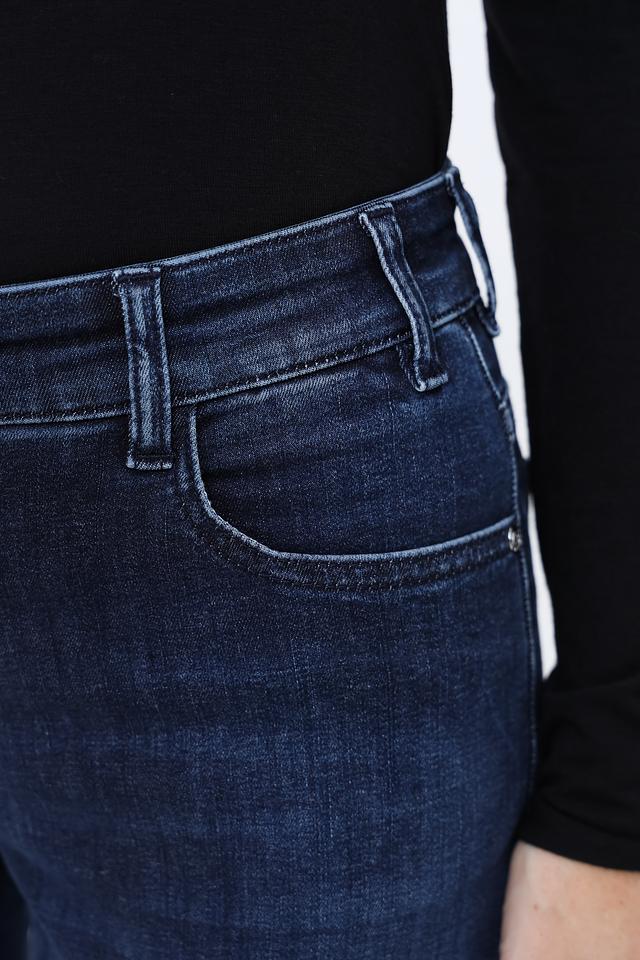 Джинсы имеют высокую посадку, что обеспечивает комфортную посадку и визуально удлиняет ноги. Эффект потертостей придает им непринужденный и современный вид. Застежка на молнию и пуговицу, а также пять карманов – два спереди и три сзади – делают их практичными и функциональными.
