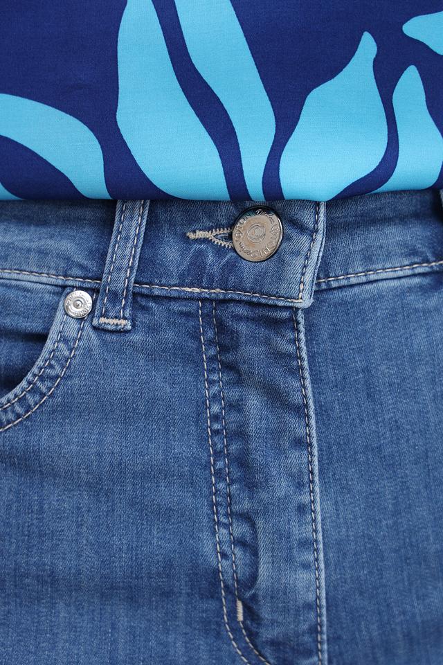 Джинсы имеют укороченный крой, что делает их идеальным выбором для теплого времени года или для создания модных образов. Застежка на пуговицу обеспечивает надежную фиксацию и комфорт при носке. Пять карманов — два спереди и два сзади — добавляют функциональности.