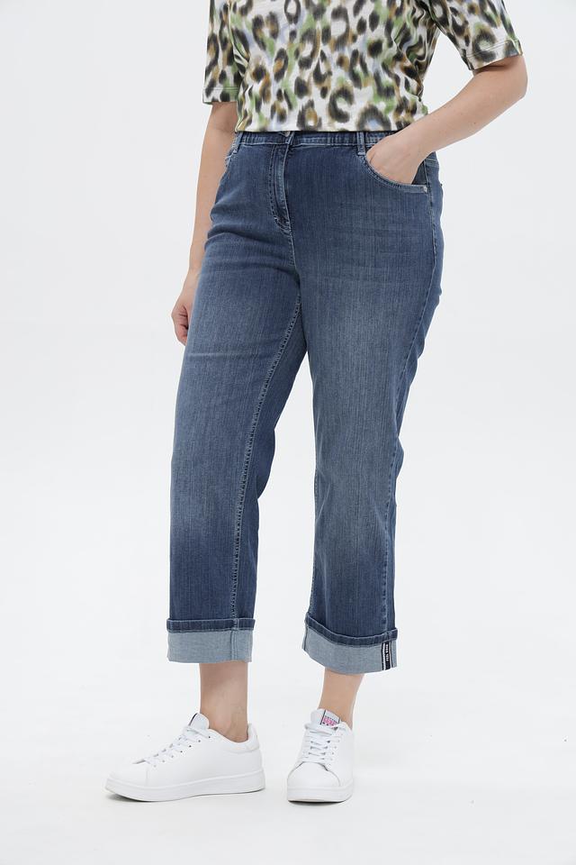 Синие джинсы-капри от Via Appia из комфортного хлопка с эластаном. Модель с эластичным поясом, укороченным силуэтом и подвернутыми штанинами. Состав: хлопок 97%, эластан 3%