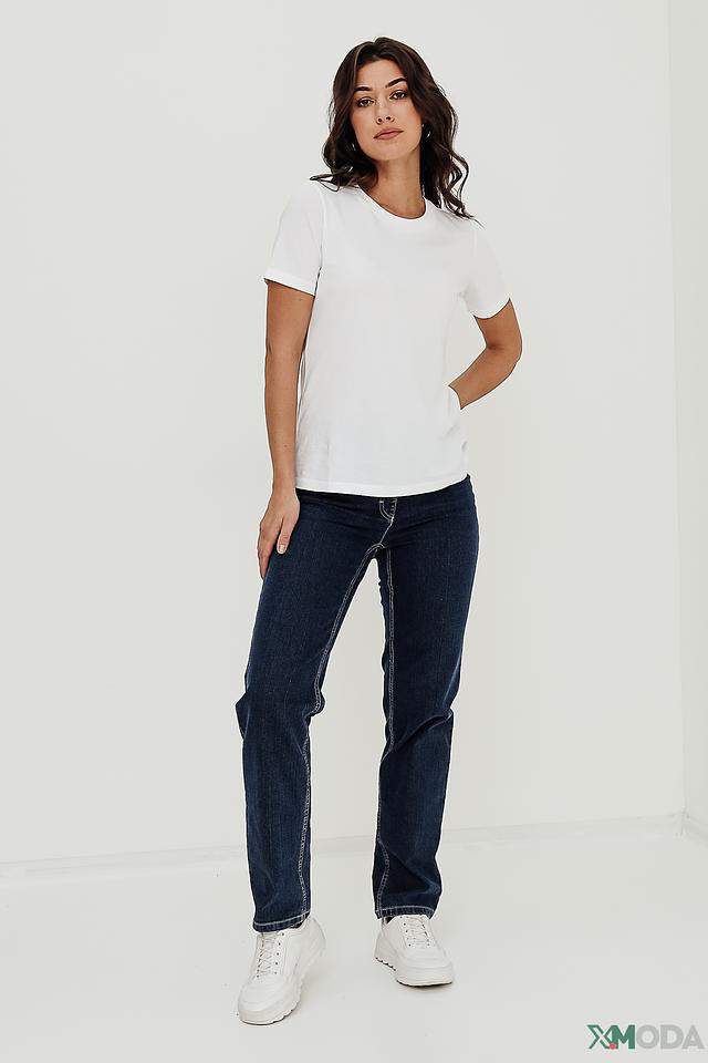Джинсы имеют прямой крой и стандартную посадку по талии. Отличительной особенностью является контрастная светлая отстрочка по швам и декоративная вышивка на задних карманах, придающая им индивидуальность.