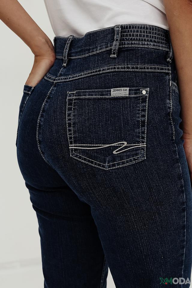 Женские джинсы Zerres тёмно-синего цвета с контрастной отстрочкой и декоративной вышивкой на задних карманах. Модель выполнена из качественного хлопка с добавлением эластана для комфортной посадки. Состав: хлопок 98%, эластан 2%