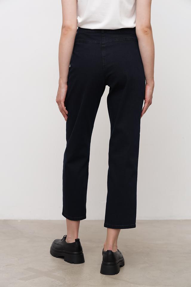 Джинсы имеют прямую посадку и слегка зауженный крой книзу, что обеспечивает свободу движений и подчеркивает фигуру. Отличительной особенностью являются функциональные карманы на молнии, добавляющие практичности и оригинальности.