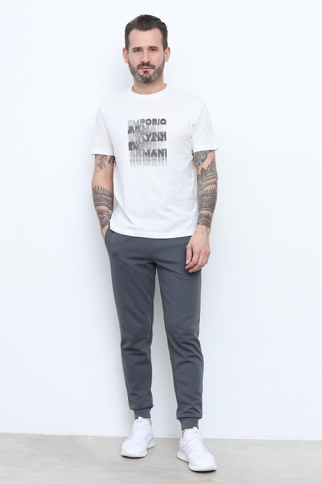 На левом бедре расположен логотип EA7, выполненный в виде нашивки. Брюки имеют два боковых кармана и манжеты внизу, которые обеспечивают плотное прилегание к ноге. Данная модель идеально подходит для занятий спортом, активного отдыха или повседневной носки.