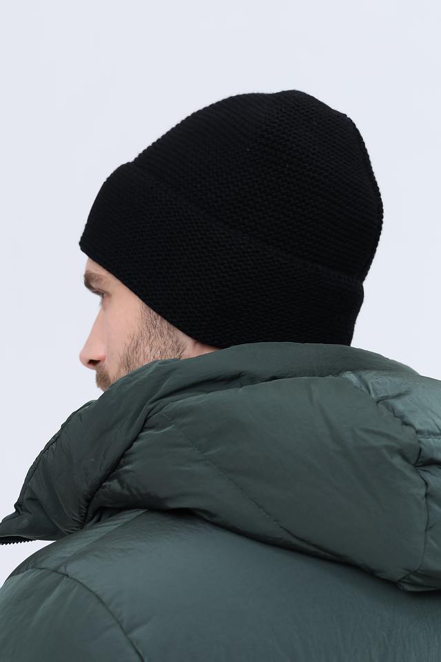 Шапка имеет классическую форму и плотно прилегает к голове, защищая от холода и ветра. Чёрный цвет делает её универсальной и подходящей к любой одежде.