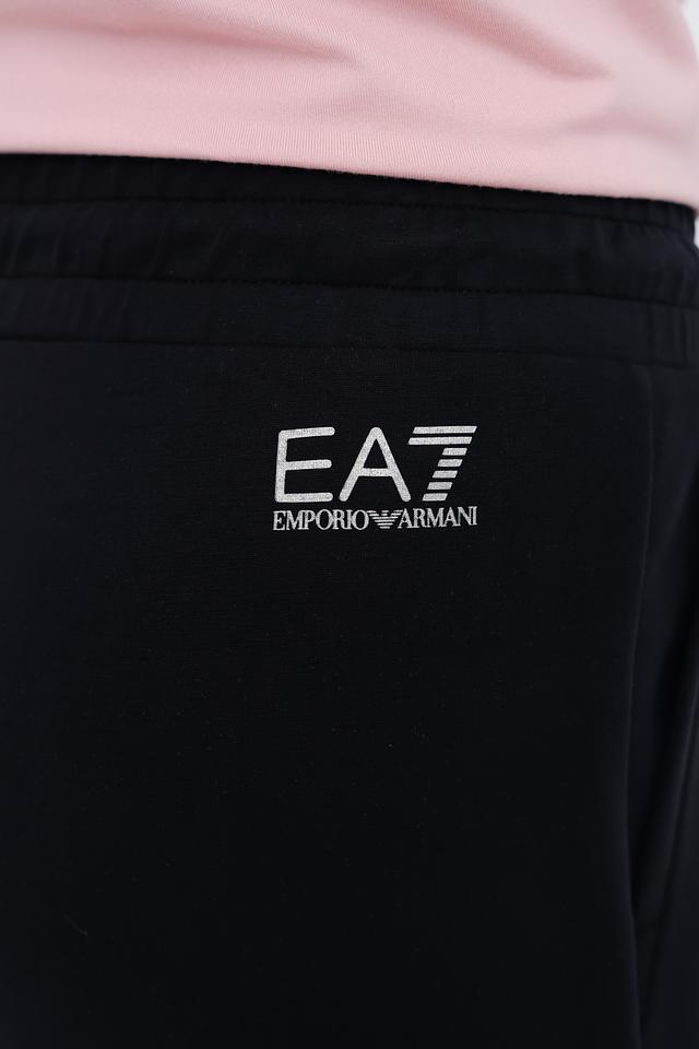 Брюки имеют два боковых кармана и логотип бренда, выполненный в виде надписи на левой штанине. На задней части брюк также расположен логотип EA7. Эти брюки станут отличным дополнением к вашему спортивному гардеробу и подойдут для занятий спортом, прогулок или повседневной носки.