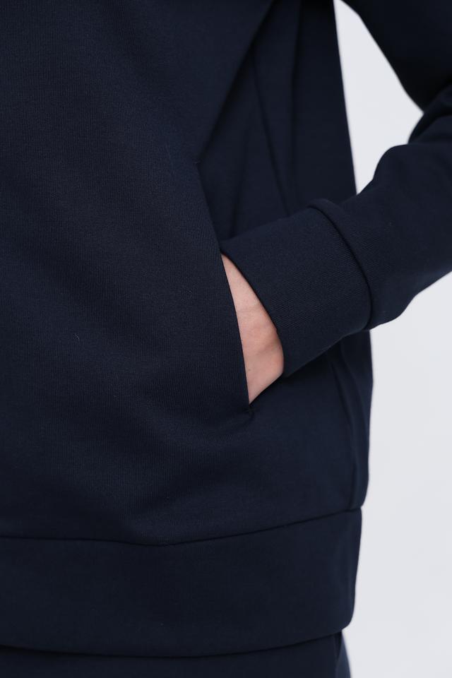 Этот спортивный костюм от EA7 – идеальный выбор для активных женщин, ценящих комфорт и стиль. Комплект состоит из худи с застежкой-молнией и спортивных брюк, выполненных в глубоком темно-синем цвете.