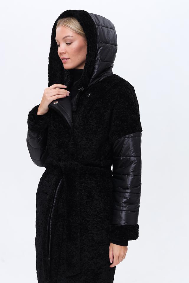 Чёрное пальто от Electra style – это стильное сочетание текстур: искусственный мех и стеганая плащёвка. Модель с капюшоном и поясом, идеально подходит для создания элегантного и комфортного образа. Состав: Состав_наполнитель полиэстер 100%, Состав_подкладка вискоза 80%, шерсть 65%, Состав_подкладка полиэстер 20%, ацетат 13%, вискоза 12%, полиэстер 10%