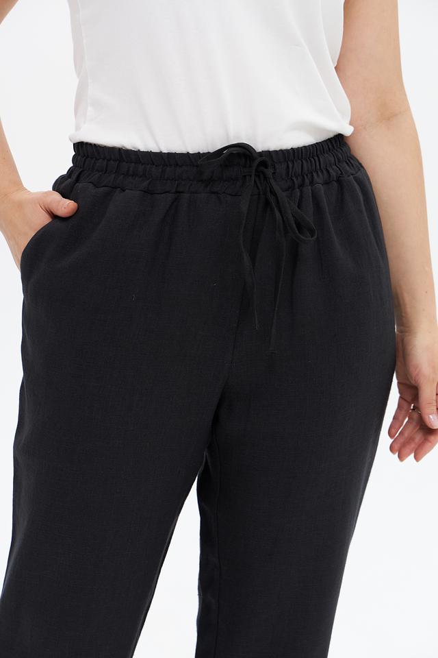 Чёрные брюки от Electra style из 100% льна — это комфорт и стиль в одном изделии. Прямой крой и эластичный пояс с завязками обеспечивают удобную посадку и свободу движений. Состав: лен 100%