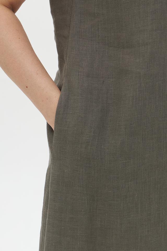 Это платье от Electra style выполнено из 100% льна, что обеспечивает комфорт и воздухопроницаемость в жаркую погоду. Платье имеет прямой силуэт, который подходит для разных типов фигур.