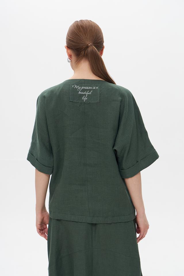 Зеленая блуза Electra style из 100% льна – это стильное и комфортное решение для создания повседневных образов. Свободный крой и короткие рукава обеспечивают удобство в жаркую погоду, а натуральный лен дарит ощущение прохлады и легкости. Состав: лен 100%