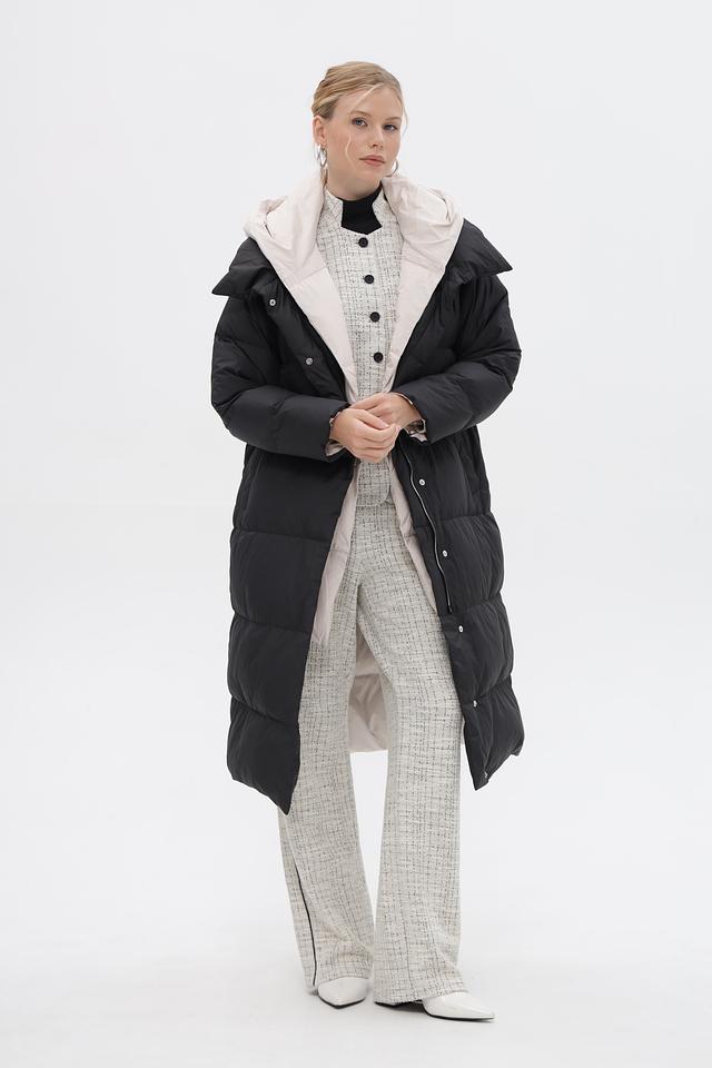 Пальто имеет объёмную стеганую текстуру, которая придает ему современный и стильный вид. Удобный капюшон защитит от ветра и снега, а застежка-молния позволит легко регулировать степень утепления.