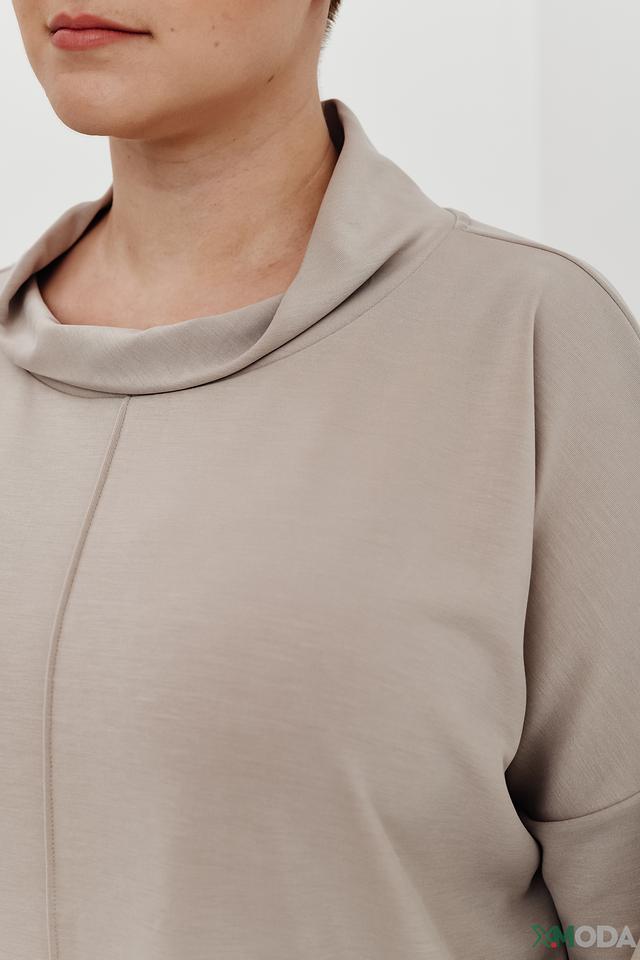 Джемпер отличается оригинальным воротником-стойкой, который добавляет образу изысканности. Рукава 3/4 делают его универсальным для любого времени года. Изготовлен из мягкой и приятной к телу ткани, состоящей из полиэстера, модала и эластана.
