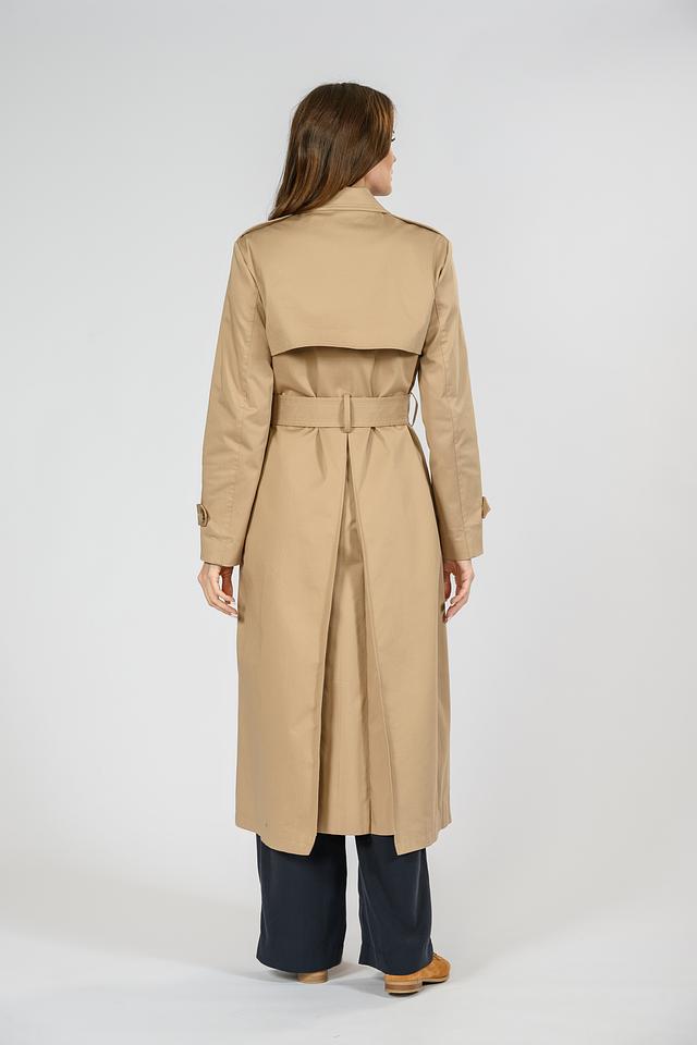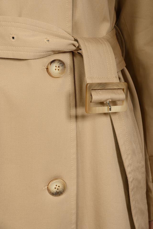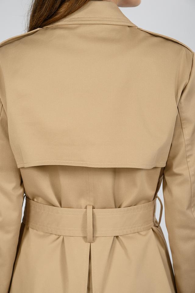 Бежевый плащ от Emka – это классическая верхняя одежда, выполненная в лаконичном стиле. Модель имеет двубортную застёжку на пуговицы и пояс, что позволяет подчеркнуть силуэт. Плащ изготовлен из хлопка с добавлением эластана. Состав: хлопок 97%, эластан 3%