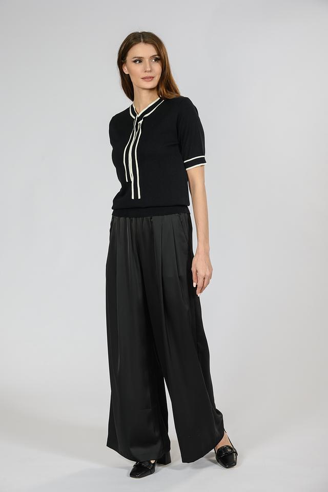 Представляем брюки от бренда Emka, выполненные в классическом чёрном цвете. Эта модель палаццо станет отличным дополнением к вашему гардеробу, позволяя создавать как повседневные, так и более формальные образы.