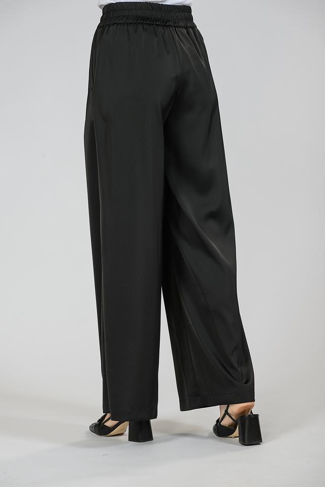 Чёрные брюки Emka палаццо – стильное и комфортное решение для создания элегантного образа. Модель выполнена из лёгкой ткани с широкими штанинами и эластичным поясом, обеспечивающим удобную посадку. Состав: полиэстер 80%, вискоза 20%