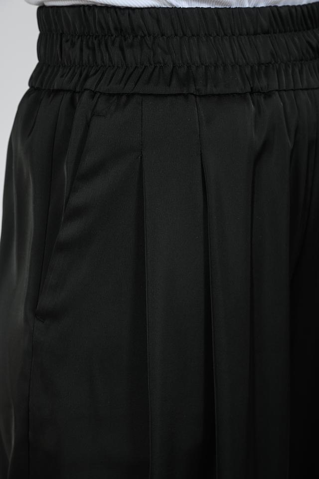 Брюки имеют широкий крой и свободную посадку, что обеспечивает максимальный комфорт в течение дня. Эластичный пояс гарантирует идеальную посадку по фигуре, а складки на талии добавляют изысканности.