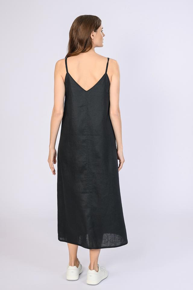 Платье Emka льняное чёрное на бретелях