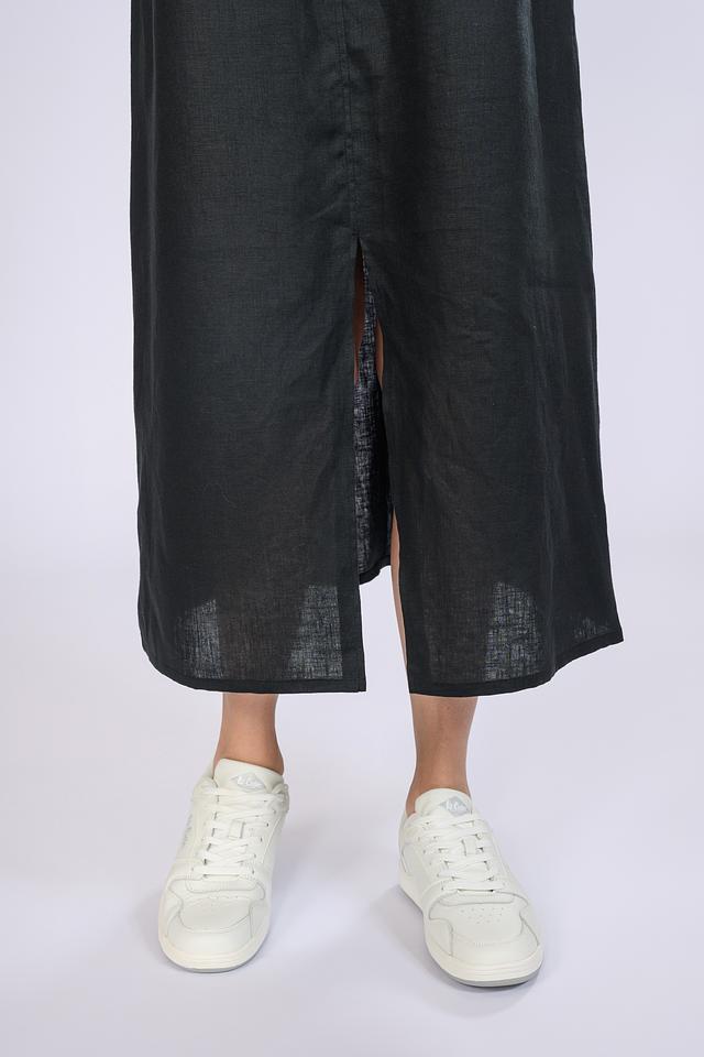 Чёрное льняное платье от Emka – это идеальный выбор для летнего гардероба. Лёгкий лен обеспечивает комфорт в жаркую погоду, а свободный крой и изящные бретели придают образу непринуждённость и женственность. Состав: лен 100%
