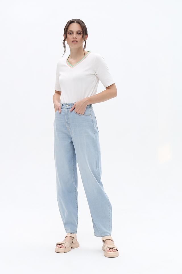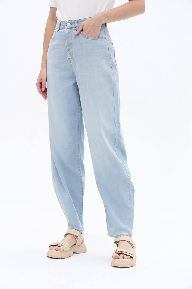 Женские джинсы Emporio Armani голубого цвета в свободном крое. Модель выполнена из качественного хлопка с добавлением эластана для комфорта и свободы движений. Высокая посадка и широкие штанины создают современный силуэт. Состав: хлопок 98%, эластан 2%