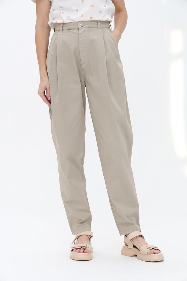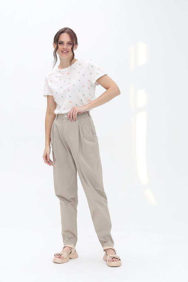 Джинсы имеют классический крой с завышенной талией и широкими штанинами, что обеспечивает комфортную посадку и подчеркивает достоинства фигуры. Передняя часть джинсов оформлена защипами, добавляющими изысканности образу.