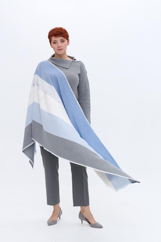 Этот шарф от Emporio Armani – идеальный аксессуар для создания элегантного и утонченного образа. Шарф выполнен в голубой цветовой гамме с полосатым рисунком, сочетающим различные оттенки голубого, белого и серого.