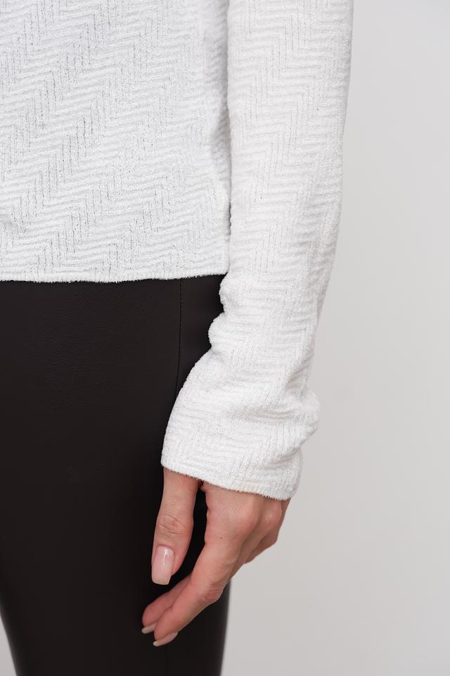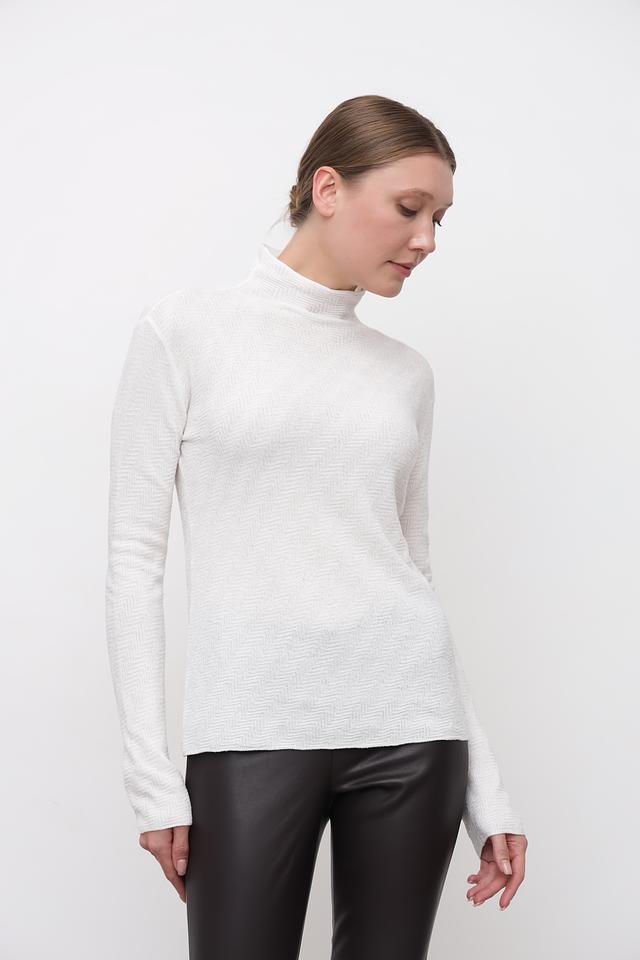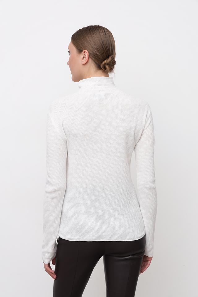 Модель имеет классический крой с высоким воротом, который подчеркивает линию шеи. Текстурированный узор придает водолазке изысканность и оригинальность. Прямой силуэт обеспечивает свободу движений и комфортную посадку по фигуре.