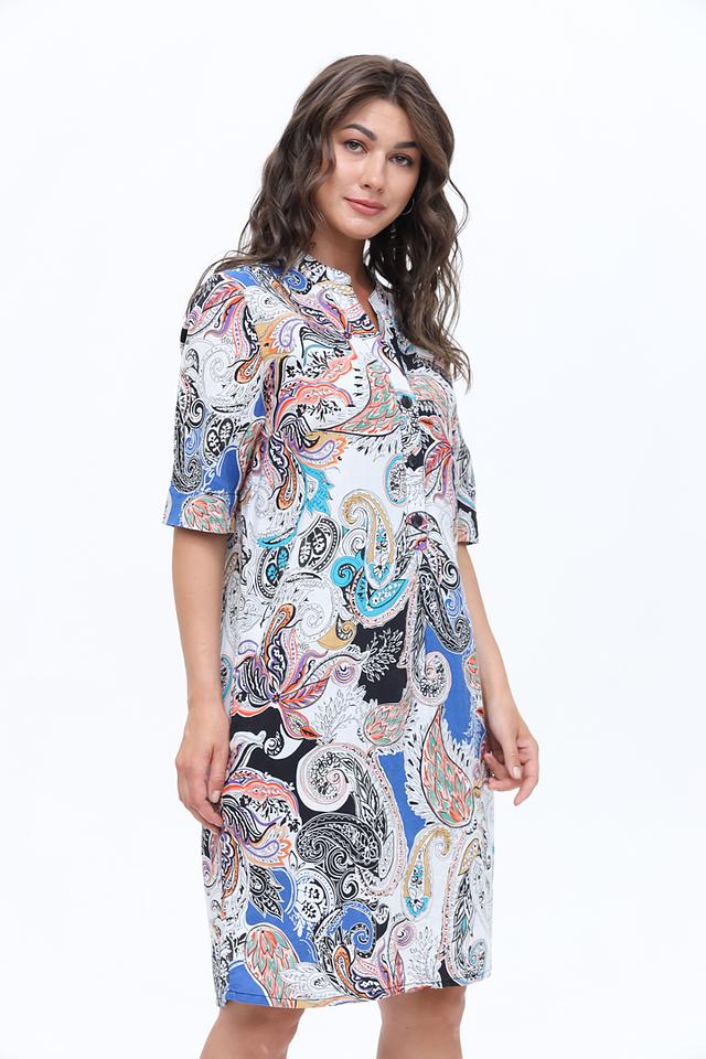 Платье Erfo с ярким цветочным принтом в стиле пейсли станет отличным выбором для создания стильного образа. Модель выполнена из натурального льна с хлопком, что обеспечивает комфорт в жаркую погоду. Платье имеет V-образный вырез и короткие рукава. Состав: лен 59%, хлопок 41%