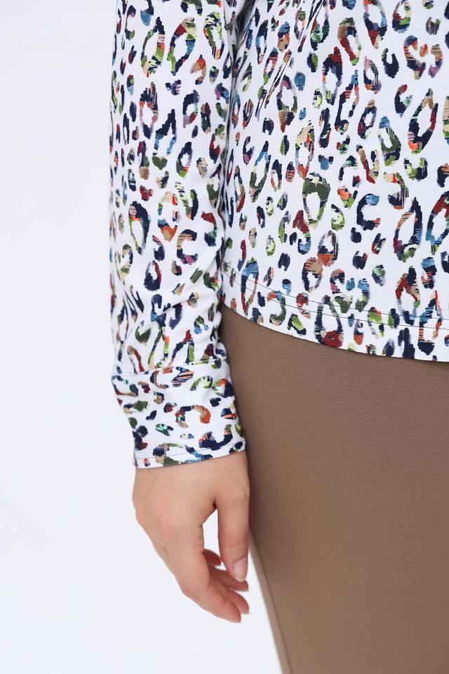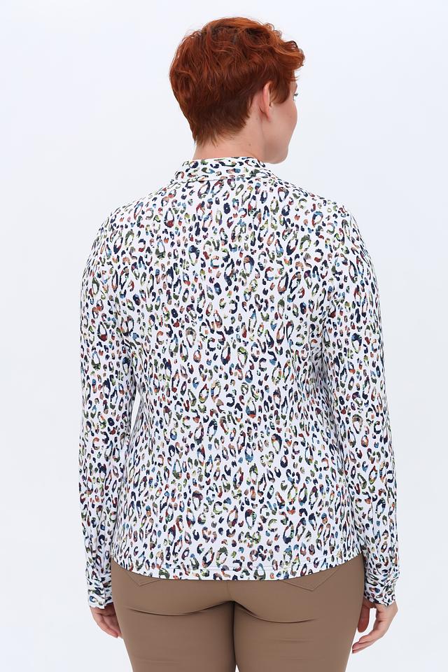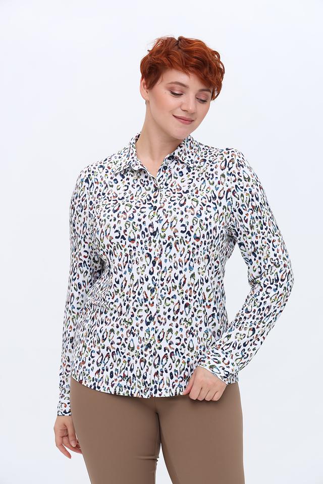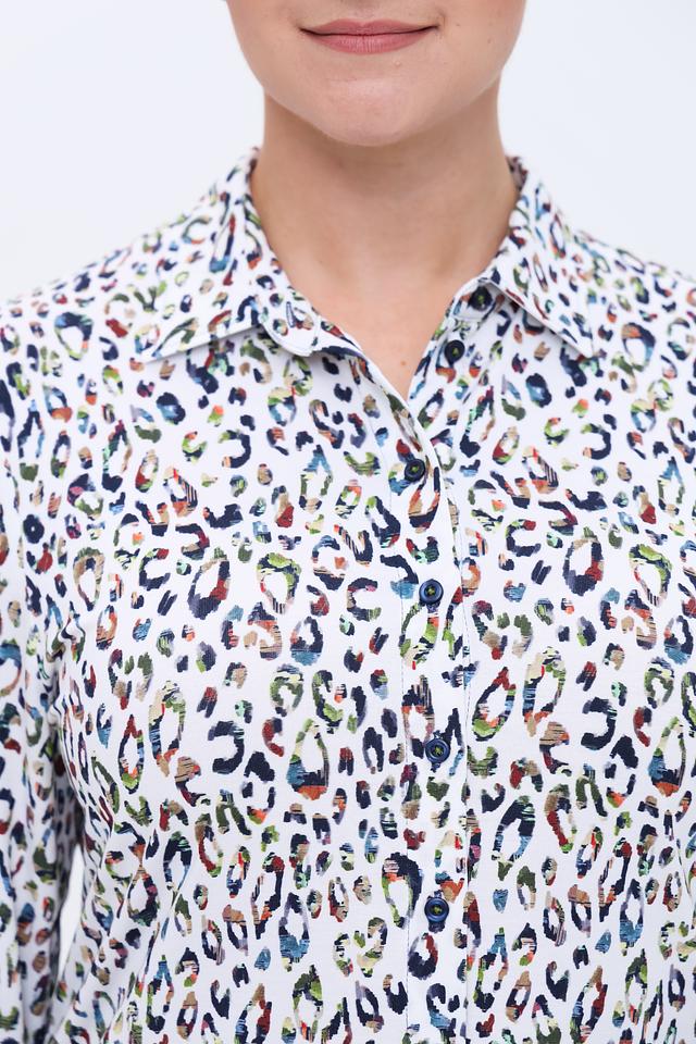 Белая рубашка Erfo с ярким леопардовым принтом станет стильным дополнением вашего гардероба. Модель выполнена из мягкой вискозы с добавлением эластана, обеспечивающего комфорт при носке и сохранение формы. Состав: вискоза 93%, эластан 7%