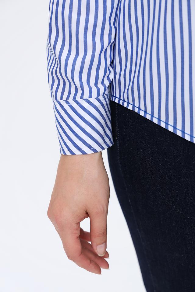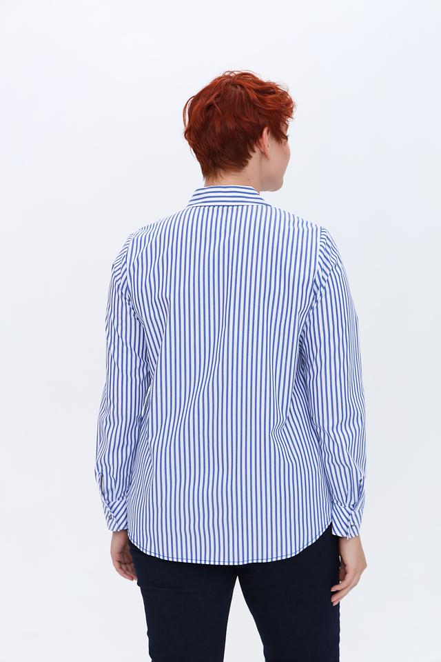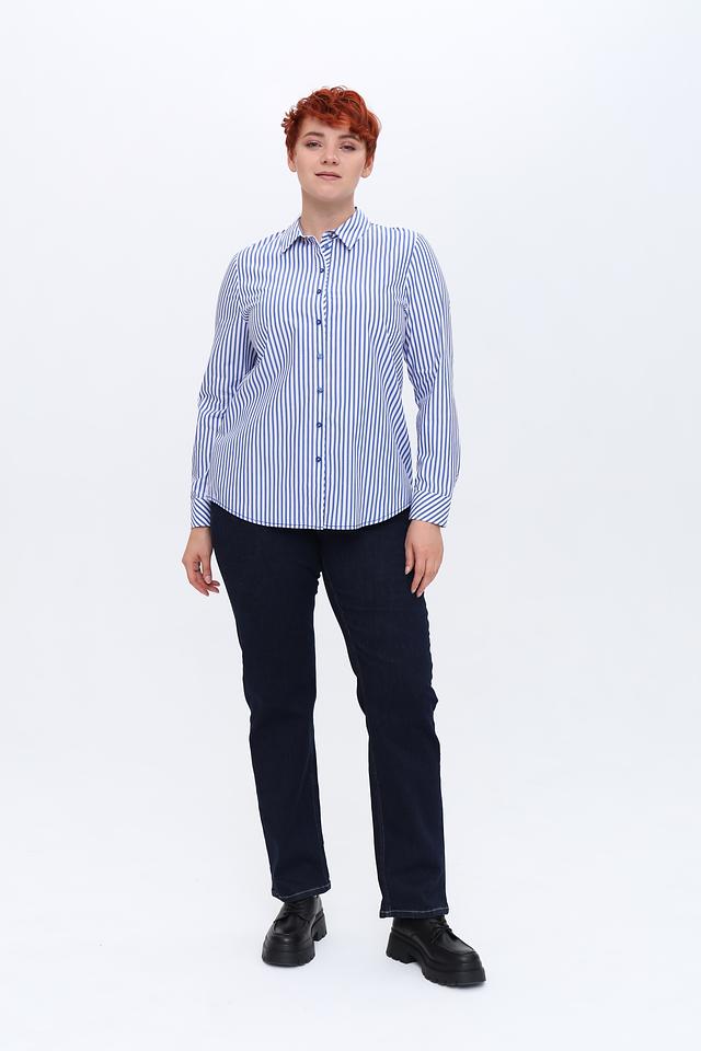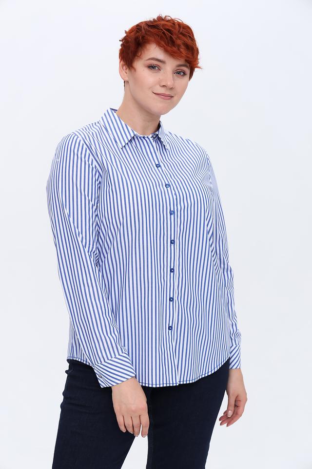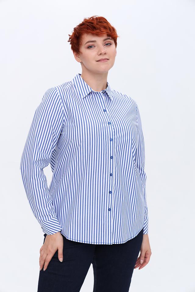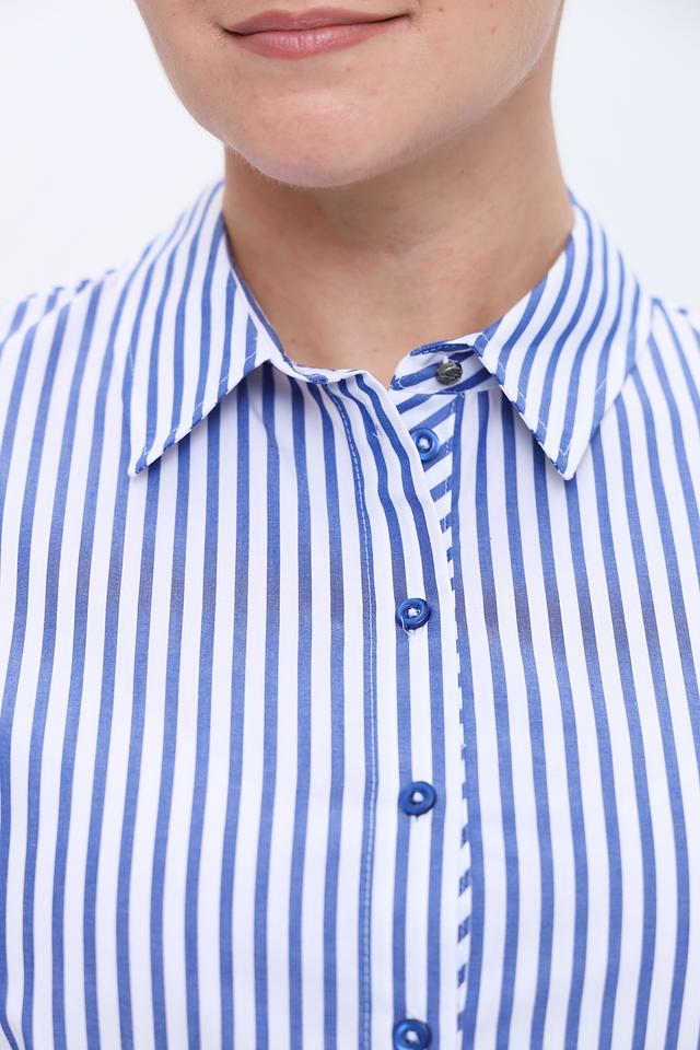 Женская рубашка Erfo синего цвета в классическую полоску. Изготовлена из 100% хлопка, обеспечивающего комфорт и воздухопроницаемость. Отличный выбор для создания стильного повседневного образа. Состав: хлопок 100%