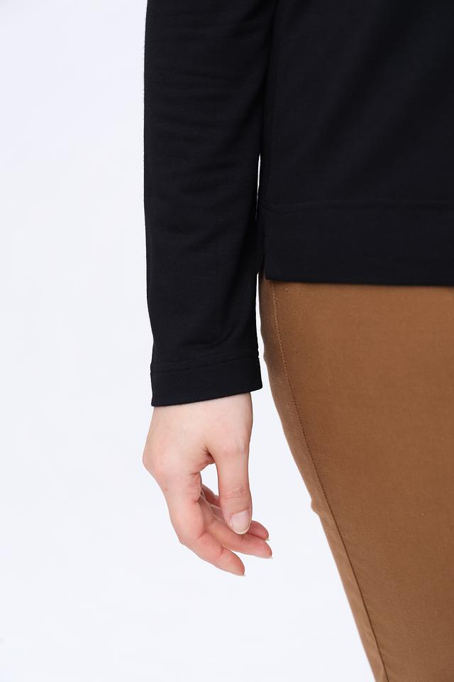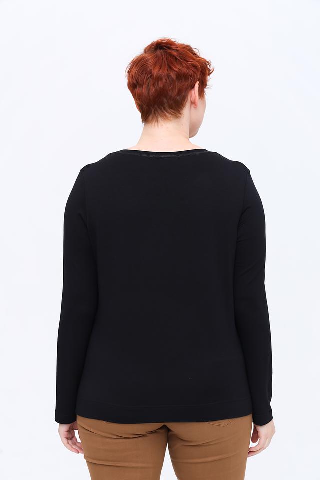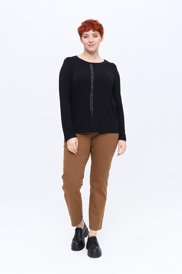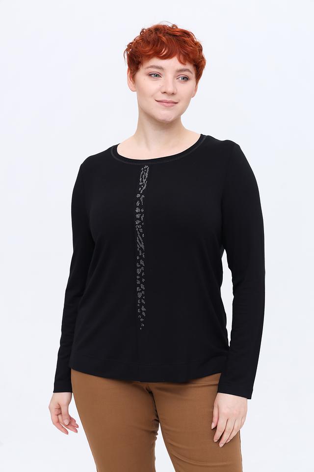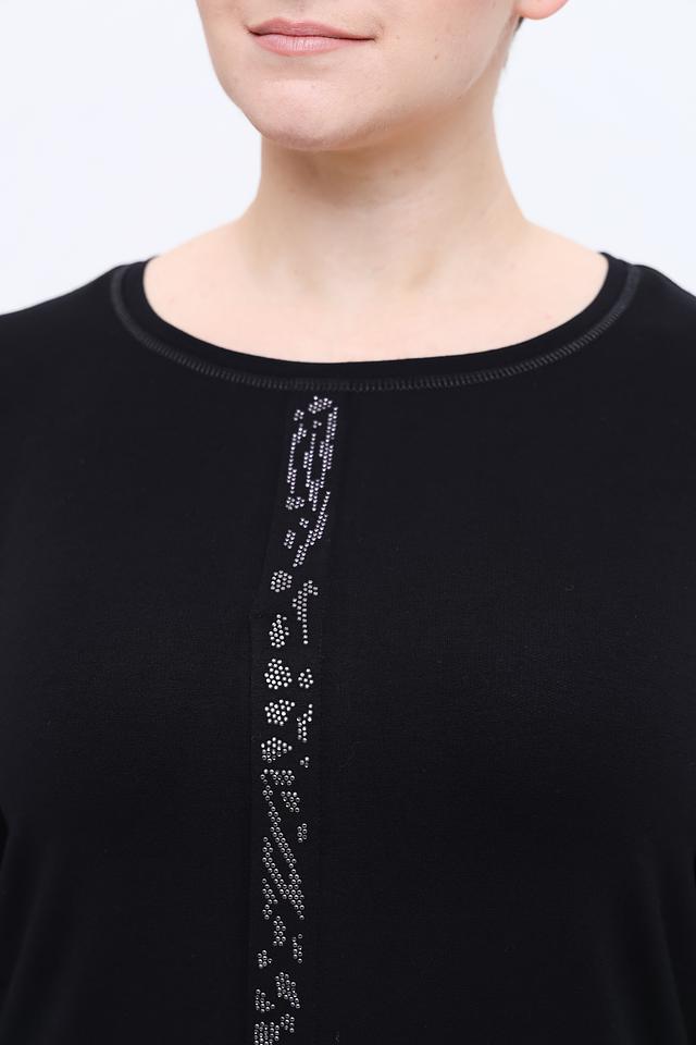 Чёрный лонгслив от Erfo с длинными рукавами, украшенный вертикальной линией из страз. Изготовлен из мягкой и приятной к телу вискозы с добавлением эластана для комфортной посадки. Состав: вискоза 97%, эластан 3%