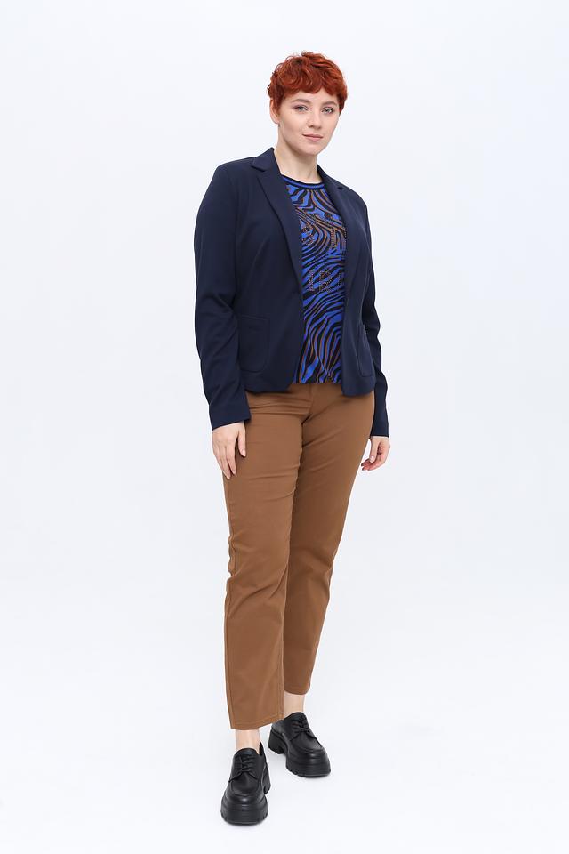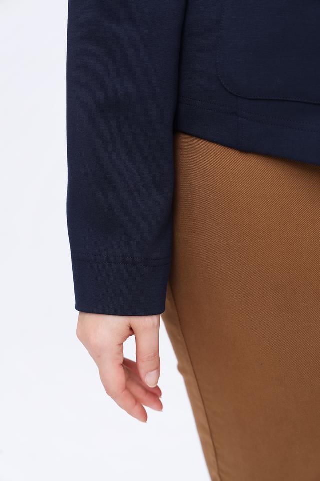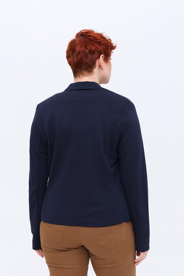 Модель выполнена из качественной ткани, состоящей из вискозы, полиэстера и эластана, что обеспечивает комфорт в носке и хорошую посадку по фигуре. Жакет имеет длинные рукава и лацканы. Накладные карманы добавляют практичности.