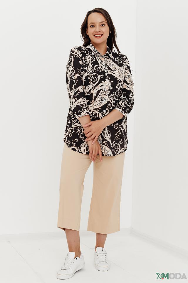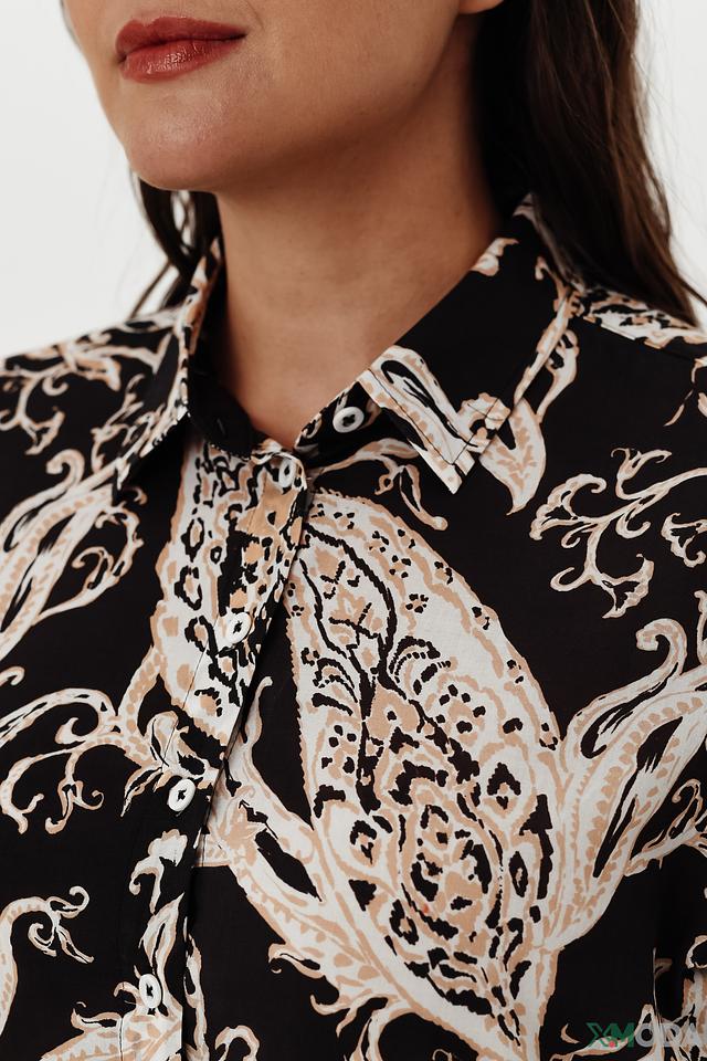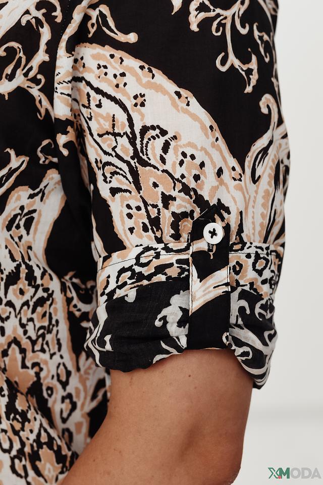 Женская рубашка Erfo чёрного цвета с изысканным бежевым принтом – стильное и комфортное решение для создания элегантного образа. Изготовлена из 100% хлопка, обеспечивающего приятные ощущения и воздухопроницаемость. Состав: хлопок 100%