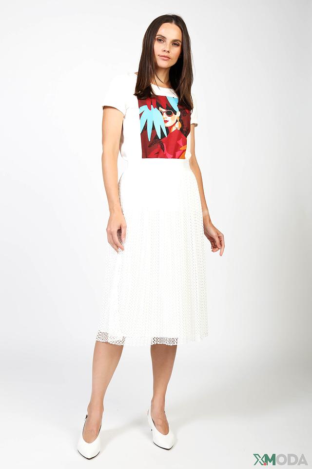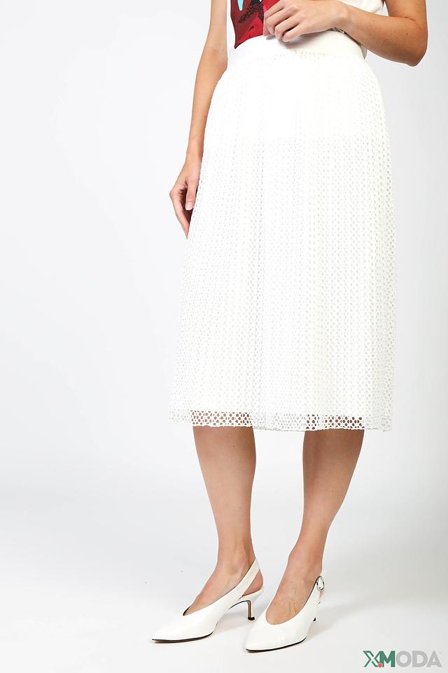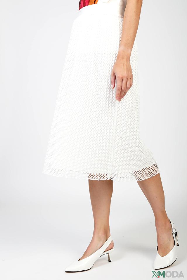 Белая юбка Eugen Klein длиной миди выполнена из полиэстера с перфорацией и кружевной отделкой по низу. Модель имеет классический крой и станет отличным дополнением к вашему гардеробу. Состав: полиэстер 100%